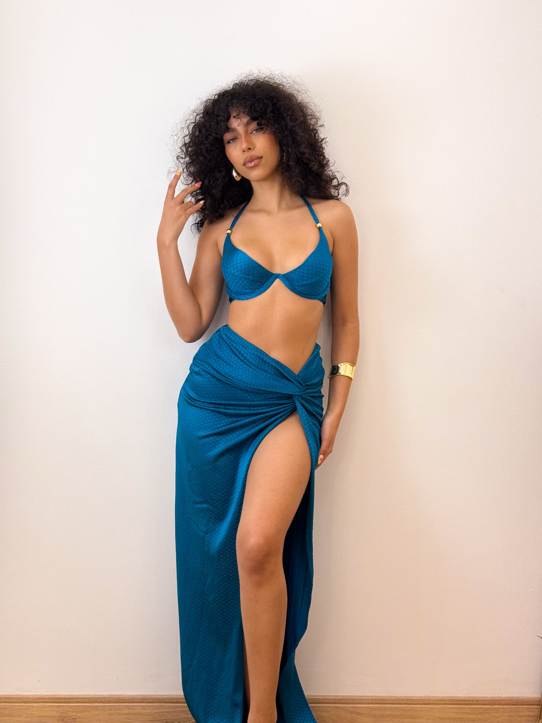 A saia duna é perfeita para quem busca um visual elegante e moderno. O cós transpassado e a cintura alta ajuda a afinar a cintura e modelar o corpo.