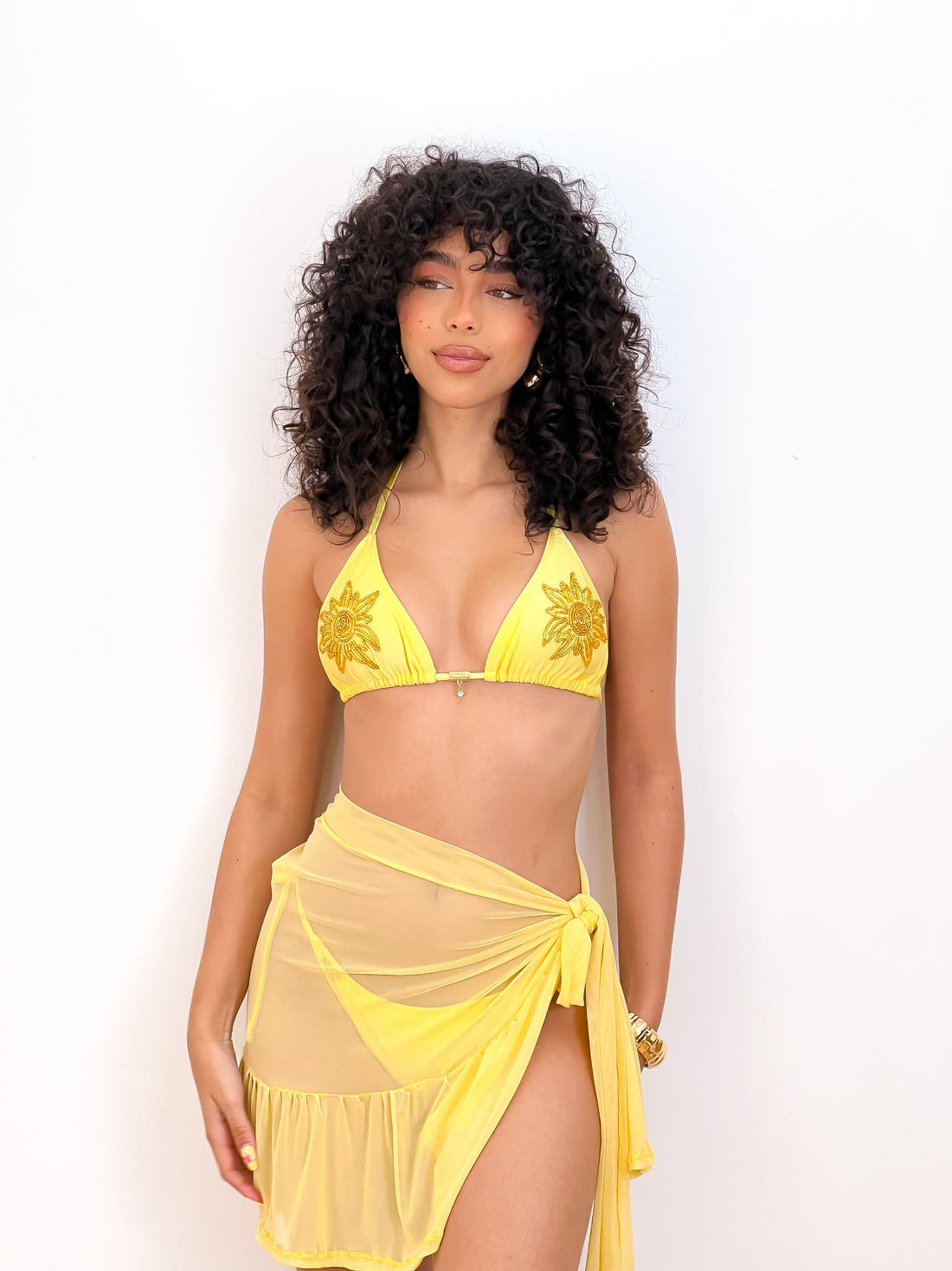A amarração lateral traz um detalhe diferenciado, permitindo ajuste ao corpo e proporcionando um visual elegante e feminino.