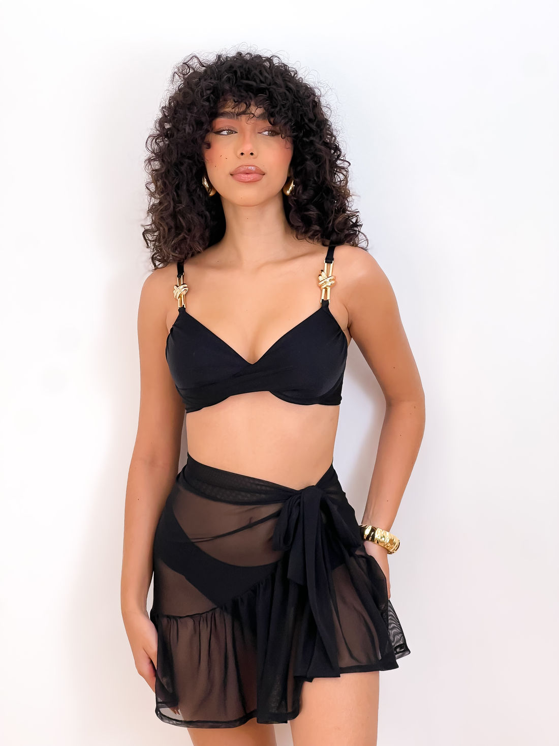A amarração lateral traz um detalhe diferenciado, permitindo ajuste ao corpo e proporcionando um visual elegante e feminino.