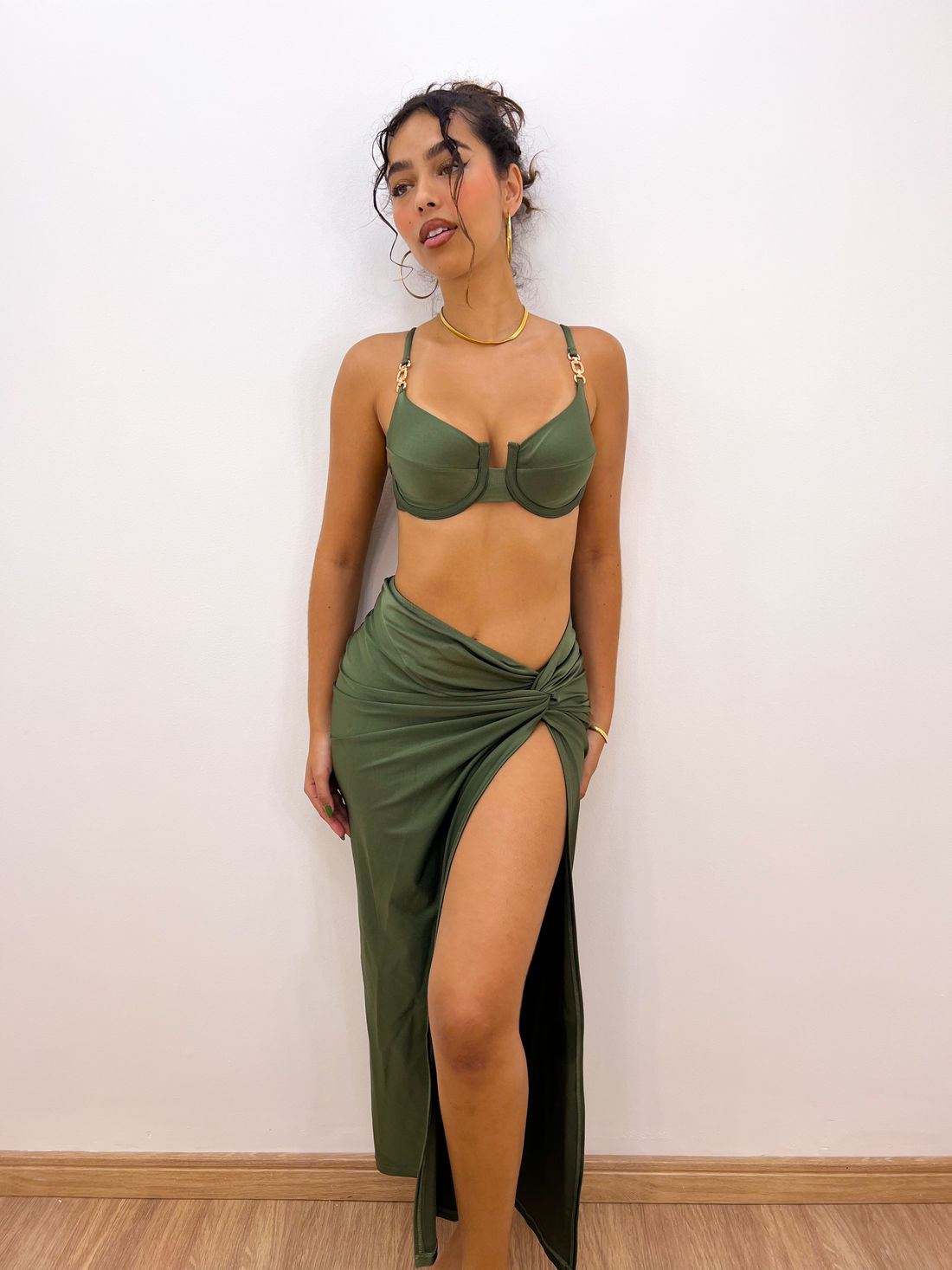 A saia Duna é perfeita para quem busca um visual elegante e moderno. O cós transpassado e a cintura alta ajuda a afinar a cintura e modelar o corpo.