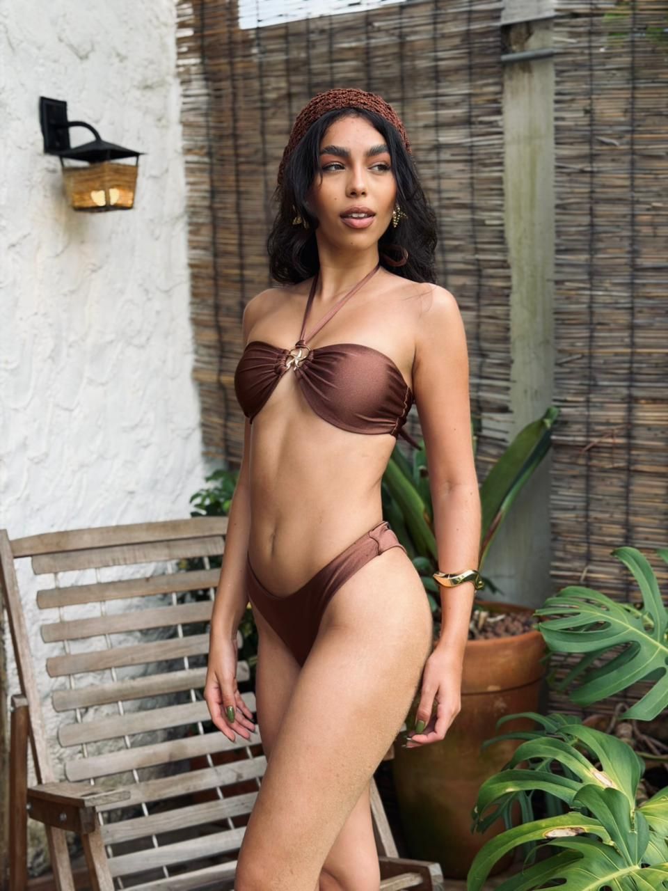 O top tomara que caia faz parte da coleção Paraíso Místico da Amarrô, possui design moderno, além de um detalhe exclusivo metálico dourado, trazendo um toque místico e sofisticado ao look.